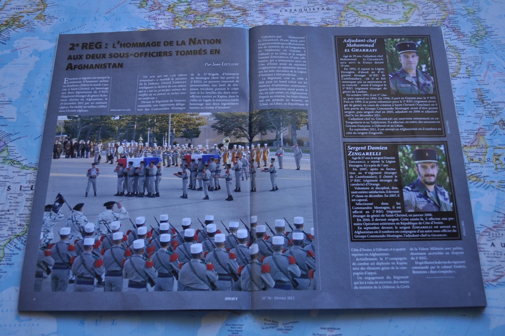 Nos artigos sobre unidades francesas que habitualmente publica, estes são extensos, detalhados e incluem quase e sempre uma componente histórica a juntar a alguma actividade de treino operacional a que os repórteres da revista assistiram e é quase e sempre dada atenção aos símbolos/insígnias da unidade.